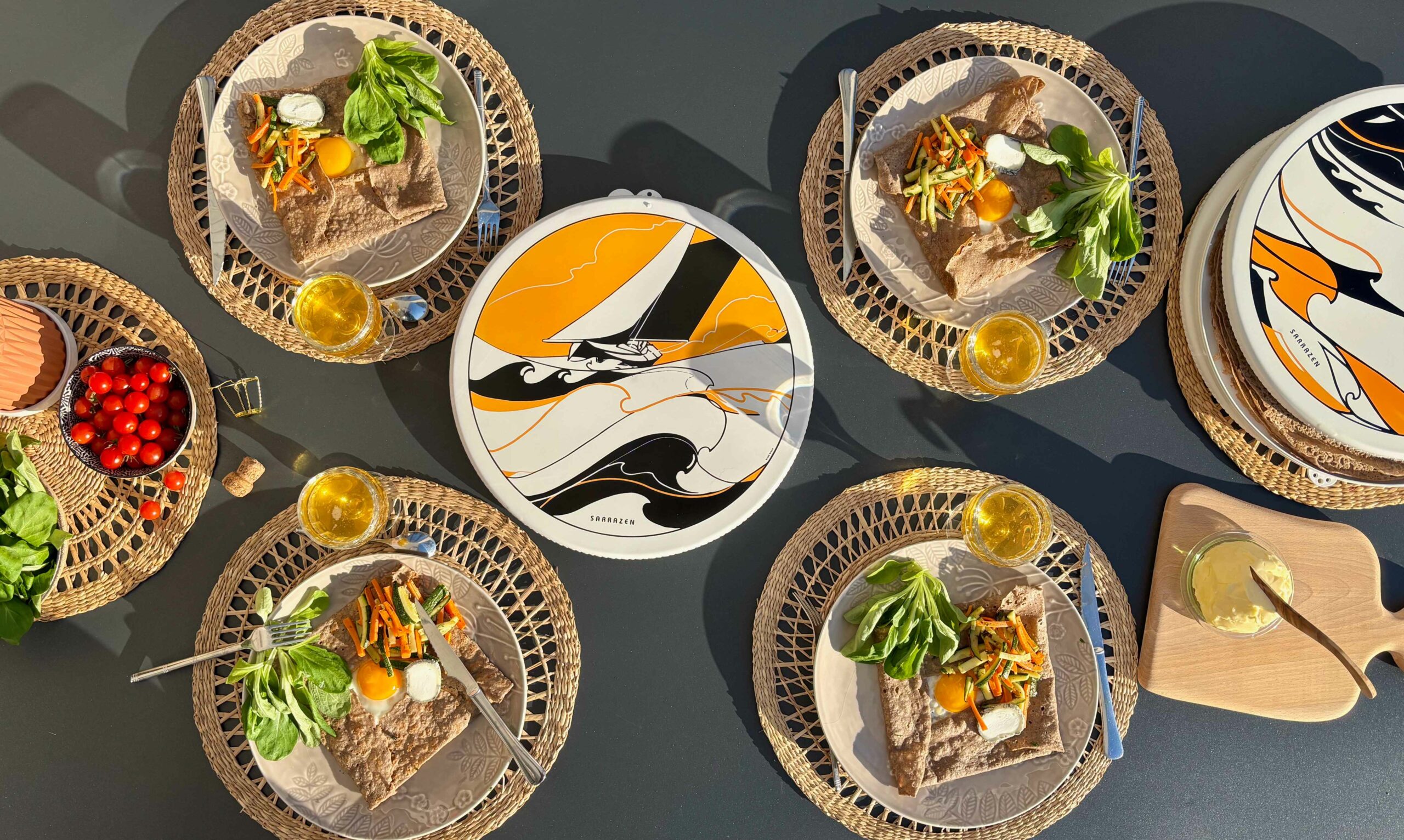 SARRAZEN est plus qu’un contenant, c’est une déclaration d’amour à un patrimoine vivant, un hommage discret et élégant à la culture bretonne, illustrée par deux œuvres de Bruno Blouch, talentueux artiste concanois et forcément amateur de crêpes de blé noir et de froment !